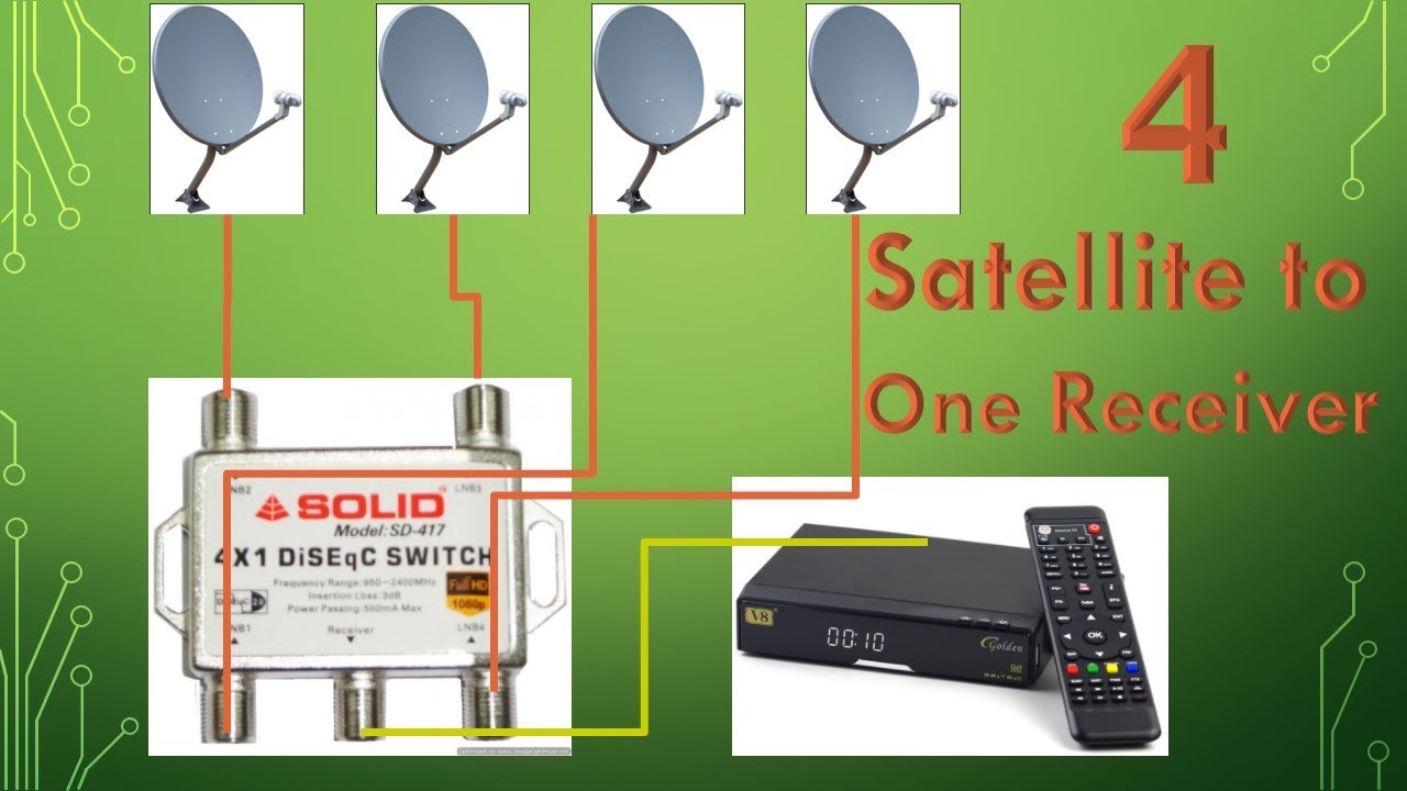 - Connecting the DiSEqC switch: All LNBs are connected to the switch, which is then linked to the receiver.